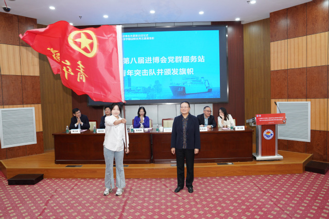 进博会党群服务站青年突击队接受授旗