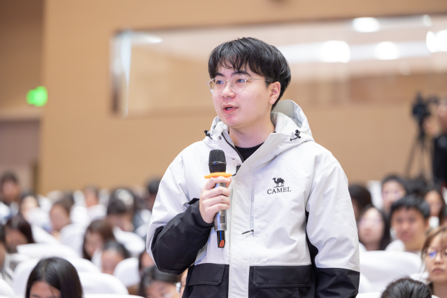 在互动环节,参会学生围绕海洋产业发展前景、法治人才培养路径、青年如何将个人价值与国家战略结合等话题踊跃提问。张海文结合自身经历,勉励同学们要不断拓宽视野,关注全球海洋治理的前沿动态,积极参加行业讲座论坛;同时要夯实专业基础,练就扎实的基本功,在服务国家战略中实现个人价值。她语重心长地指出:“科学没有国界,但科学家有自己的国家。”鼓励大家勇于选择“国家需要、自己热爱、长期有价值”的发展道路。